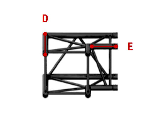 Prolyte H40V PC C003 Winkel, SCHWARZ Traversen der Serie H40 bestehen aus Hauptrohren (48,3 x 3 mm) und Diagonalen (20 x 2 mm). Die Traverse H40 bietet neben ihrer Flexibilität zusätzliche Stabilität und eignet sich ideal für die Veranstaltungs- und Ausstellungsbranche. Die Traverse der Serie H40 ist als Dreipunkt- und Vierpunktausführung lieferbar und umfasst verschiedene Eckenformen und Zubehör. Technische Daten Lieferung OHNE KONUSVERBINDER! Winkel, 90°, 2-Weg, 0.6m 4-Punkt-Fachwerk Außenmaß: 400 mm Anschlüsse über Koniverbinder CCS6 Schenkellänge: 600mm Gewicht: 6,6kg