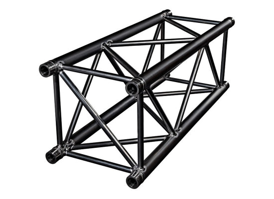 Prolyte H40V PC Traverse, 1.0m, SCHWARZ Traversen der Serie H40 bestehen aus Hauptrohren (48,3 x 3 mm) und Diagonalen (20 x 2 mm). Die Traverse H40 bietet neben ihrer Flexibilität zusätzliche Stabilität und eignet sich ideal für die Veranstaltungs- und Ausstellungsbranche. Die Traverse der Serie H40 ist als Dreipunkt- und Vierpunktausführung lieferbar und umfasst verschiedene Eckenformen und Zubehör. Technische Daten Lieferung OHNE KONUSVERBINDER! 4-Punkt-Fachwerk Außenmaß: 400 mm Anschlüsse über Koniverbinder CCS6 Maße: 400x400x1000mm Gewicht: 9,2kg