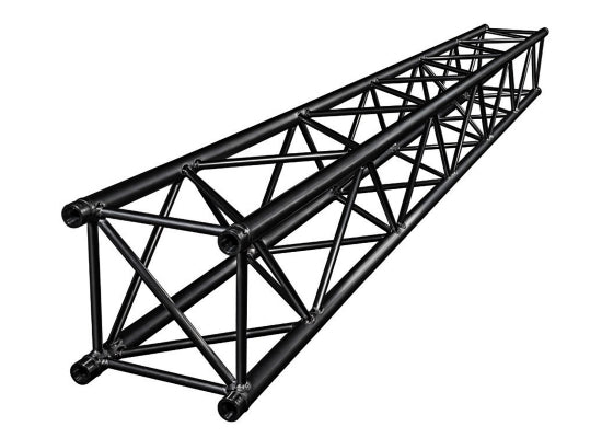 Prolyte H40V PC Traverse, 4.0m, SCHWARZ Traversen der Serie H40 bestehen aus Hauptrohren (48,3 x 3 mm) und Diagonalen (20 x 2 mm). Die Traverse H40 bietet neben ihrer Flexibilität zusätzliche Stabilität und eignet sich ideal für die Veranstaltungs- und Ausstellungsbranche. Die Traverse der Serie H40 ist als Dreipunkt- und Vierpunktausführung lieferbar und umfasst verschiedene Eckenformen und Zubehör. Technische Daten Lieferung OHNE KONUSVERBINDER! 4-Punkt-Fachwerk Außenmaß: 400 mm Anschlüsse über Koniverbinder CCS6 Maße: 400x400x4000mm Gewicht: 36kg