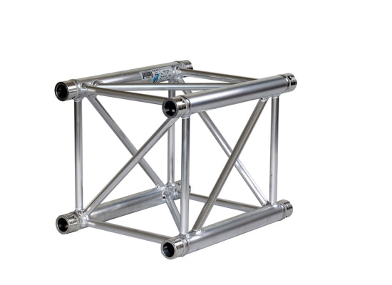Prolyte H40V Traverse, 0.25m Traversen der Serie H40 bestehen aus Hauptrohren (48,3 x 3 mm) und Diagonalen (20 x 2 mm). Die Traverse H40 bietet neben ihrer Flexibilität zusätzliche Stabilität und eignet sich ideal für die Veranstaltungs- und Ausstellungsbranche. Die Traverse der Serie H40 ist als Dreipunkt- und Vierpunktausführung lieferbar und umfasst verschiedene Eckenformen und Zubehör. Technische Daten Lieferung OHNE KONUSVERBINDER! 4-Punkt-Fachwerk Außenmaß: 400 mm Anschlüsse über Koniverbinder CCS6 Maße: 400x400x250mm Gewicht: 3,83kg