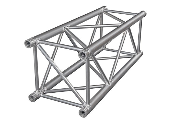Prolyte H40V Traverse, 1.0m Traversen der Serie H40 bestehen aus Hauptrohren (48,3 x 3 mm) und Diagonalen (20 x 2 mm). Die Traverse H40 bietet neben ihrer Flexibilität zusätzliche Stabilität und eignet sich ideal für die Veranstaltungs- und Ausstellungsbranche. Die Traverse der Serie H40 ist als Dreipunkt- und Vierpunktausführung lieferbar und umfasst verschiedene Eckenformen und Zubehör. Technische Daten Lieferung OHNE KONUSVERBINDER! 4-Punkt-Fachwerk Außenmaß: 400 mm Anschlüsse über Koniverbinder CCS6 Maße: 400x400x1000mm Gewicht: 9,2kg