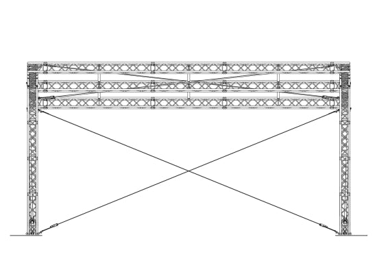 Prolyte Mini Flat Roof 6x4m Basis Set Pultdach Die Mini Flat Roofs sind vielseitige Konstruktionen, die auf Standard-Truss-Elementen und fest verschweißten Ecken basieren. Sie können als kleine Veranstaltungsbühnen oder als FOH-Überdachungen verwendet werden. Die drei Standardgrößen sind aus H30V Traversenelementen aufgebaut. Die Konstruktion steht auf speziellen Stahlunterbauten mit integrierten Abspannpunkten. Ballast kann direkt an den Bodenplatten angebracht werden. Die Verwendung in Kombination mit Bodenankern ist ebenso möglich. Unterschiedliche Konfigurationen können durch einfaches Hinzufügen von Standard-Truss-Elementen erreicht werden. Features Vielseitige Anwendung Einfach zu handhaben, schneller Aufbau Basiert auf Standardkomponenten Flexibel in der Größe Ideal für kleinere Veranstaltungen Technische Daten Dachstruktur: H30V Tragkraft (UDL): ca. 1600kg Transportvolumen: ca. 16m³ Max. Windgeschwindigkeit: 28,4m/Sekunde, 63,3 mph Farbe der Abdeckung: Standard: Außen grau, innen schwarz (andere Farben möglich) Soundwings: Nein, aber PA von 250kg ist vor den vorderen Türmen möglich. Ballast: Mehrere Möglichkeiten auf Anfrage, je nach Konstruktion. Zum Beispiel Wassertanks, Betonblöcke. Maße (BxT): 6x4m Gewicht: ca. 558kg