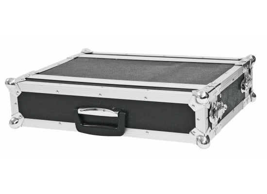 Rack 02 HE Super Economy 19, , , Nutztiefe:24cm Features Professionelles Flightcase für 19" Geräte Passend für 19" Steuer- und Effektgeräte 2 abnehmbare Deckel (Double-Door-Version) Eingebaute Rackschienen Hochwertige Verarbeitung mit 7 mm mehrschichtig verleimtem Holz, schwarz laminiert Aluminiumprofilrahmen (22 mm) mit abgerundeten Ecken Dreischenklige, mittelgroße Stahlkugelecken 4 Schnappschlösser mit Ösen zum Absperren 4 große, stahlverstärkte Gummifüße Koffergriff Lieferung mit Montageschrauben In verschiedenen Höheneinheiten erhältlich (1 HE = 44 mm) Technische Daten Maximalbelastung: 20 kg Wandstärke: 7 mm Außenmaße (BxTxH): ca. 530 x 405 x 135 mm Innenmaße: Einbaubreite: 483 mm (19") Einbauhöhe: ca. 90 mm (2 HE) Einbautiefe: ca. 240 mm Außenmaß der Ecken: ca. 55 mm Gewicht: ca. 4 kg