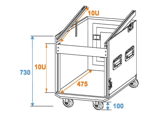 Rack 10 HE gewinkelt 19, , Spezial-Kombi-Case Profi, 10 HE, rollbar Features Hochwertige Verarbeitung mit 9 mm Wandstärke Heavy-Version (besonders stabil!) 10 Höheneinheiten vertikal 10 Höheneinheiten horizontal (aufstellbar) Aufstellbare Rackleisten 19" für Mixer oder Effektgerät Außenmaterial kunststoffbeschichtet Außenfarbe schwarz Innenmaterial Holz Innenfarbe schwarz Abnehmbarer Deckel oben Abnehmbarer Deckel vorne Abnehmbare Tür an der Rückseite für besseren Zugang bei der Verkabelung Lieferung incl. 4 Lenkrollen mit Bremse Mit 4x Case- Klappgriffen Mit 6 hochwertigen Butterfly-Schlössern Aluwinkelprofil 30 mm Technische Daten Maximalbelastung: 50 kg Wandstärke: 9 mm Außenmaße (BxTxH): ca. 560 x 610 x 800 mm Innenmaße: Einbaubreite: ca. 500 mm (19") Einbauhöhe: ca. 440 mm (10 HE) Einbautiefe: ca. 570 mm (10 HE) Türe Rückseite: 455 x 400 mm Außenmaß der Ecken: ca. 55 mm Gewicht: ca. 28 kg
