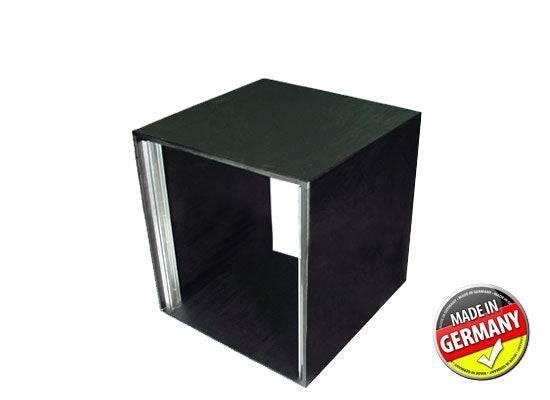 Rack 12 HE Studio Technische Daten Studiorack Standard Multiplex 15mm Strukturlack lackiert schwarz Rackschiene vorne (einf.m.Gummi) Rackschraube/Mutter/U-Scheibe: 36 Einbautiefe: 480mm Maße: 502x500x550mm Gewicht ca. 13kg