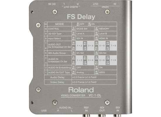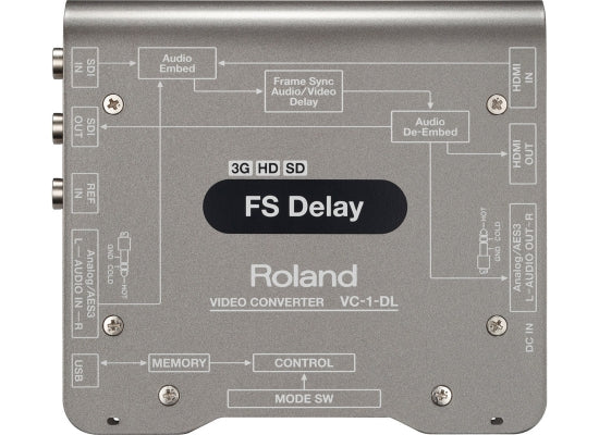 Roland VC-1-DL Formwandler Features HDMI to SDI Conversion SDI to HDMI Conversion Lossless image conversion 3G ( Level A&B) /HD/ SD SDI HDCP support Selectable Channel for Embedded/De-Embedded Audio Audio Delay - up to 9 fields (4.5 frames) Video Delay - up to 9 fields (4.5 frames) Technische Daten Maße (BxTxH): 150x130x30mm Gewicht: 0,5kg