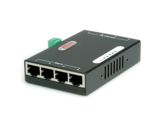 Roline Gigabit Ethernet PoE Injektor, schwarz Mit diesem ROLINE Gigabit Ethernet PoE Injektor können gleichzeitig vier PoE-fähige Workgroupswitches, Netzwerk-Kameras, Access Points, IP-phones, etc. über die TP-Anschlussleitung mit Strom versorgt werden. Features Unterstützt PoE-Standards IEEE 802.3af/at: Bis zu 30 W können pro Port in die TP-Leitung eingespeist werden. Stromversorgung über Terminal-Block oder externes DC-Netzteil (48V bis) 56V DC Port Metallgehäuse Technische Daten Hersteller: ROLINE Produktgruppe: Netzwerk-Switches Produkttyp: PoE-Injektor Farbe: schwarz Lieferumfang: PoE Injektor, externes DC-Netzteil 48VDC-75W, Quick Installation Guide Anzahl Ports gesamt: 8 Gigabit Ethernet Ports RJ-45: 4 Power over Ethernet (PoE): PoE Anzahl PoE Ports: 4 Max. Ausgangsleistung (PoE): 120 Watt Gewicht: 0,190 kg