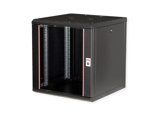 Roline Wandgehäuse Pro, 12HE, schwarz, 600x600mm, Glastür, 19''