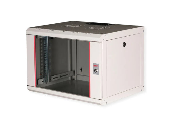 Roline Wandgehäuse Pro, 7HE, grau, 600x450mm Die Wandgehäuse der ROLINE Pro Serie wurden speziell für eine flexible Netzwerkverkabelung konzipiert. Jeder Schrank verfügt über einen aufschiebbaren Kabeleinlass im Dach mit Moosgummidichtung. Die Rückwand und das Bodenblech sind mit ausgestanzten Kabeleinlässen und Kunststoffabdeckungen ausgestattet. Das Dachchassis bietet einen ausgestanzten Bereich zur Aufnahme eines Lüftermoduls. Im Inneren sind ein Paar galvanisierte Profilschienen mit Höheneinheiten von 483 mm (19") verbaut, die zusätzlich in der Tiefe verstellbar sind. Die robusten Stahlkonstruktionen der Schränke bestehen aus bis zu 1,5 mm starkem Stahlblech und sind in Grau (RAL 7035) oder Schwarz (RAL 9005) pulverbeschichtet erhältlich. Die Seitenwände und die Fronttür sind modular abschließ- und abnehmbar, was die Zugänglichkeit verbessert. Die Wandmontage erfolgt in zwei einfachen Schritten: Zuerst wird die Rückwand an die Wand geschraubt und dann mit dem Gehäuse verbunden. Optional können Nivellierfüße oder Rollen verwendet werden, um die Schränke freistehend zu nutzen. Features Traglast: 100 kg Fronttür aus gehärtetem Glas, abschließbar 1-Punkt-Verriegelung an der Fronttür Seitenteile sind abschließ- und abnehmbar Kabelzuführung an Rückseite und Boden Dach mit Austanzung für Lüftermodule Lüftungsschlitze für passive Be- und Entlüftung Inkl. Befestigungsmaterial IP Schutzklasse: IP20 Technische Daten Produkttyp: 19"-Wandgehäuse Farbe: grau Rastermaß: 482,6 mm (19 Zoll) Höheneinheiten: 7 HE Unterstützte Mindest-Racktiefe: 305 mm Unterstützte Maximal-Racktiefe: 370 mm Lieferzustand: komplett montiert Materialgruppe: Stahl Material Fronttür: Glas Wandmontage möglich: ja Justierfüsse: nein Maximale Tragkraft: 100 kg Schutzart (IP Code): IP20 Schalldicht: nein Fronttür: Glastür Rackschienen: ja Seitenwände enthalten: ja Abnehmbare Seitenwände: ja Abnehmbare Vordertür: ja Abnehmbare Hintertür: nein Belüftung: passiv RAL-Farbe: RAL 7035 Lichtgrau Maße (HxBxT): 418x600x450mm Gewicht: 14.5 kg Lieferumfang 19-Zoll Wandgehäuse Pro 7 HE Erdungskabel-Set Installations-Set (Schrauben, Käfigmuttern, Unterlegscheiben) 2x Schlüssel Montageanleitung