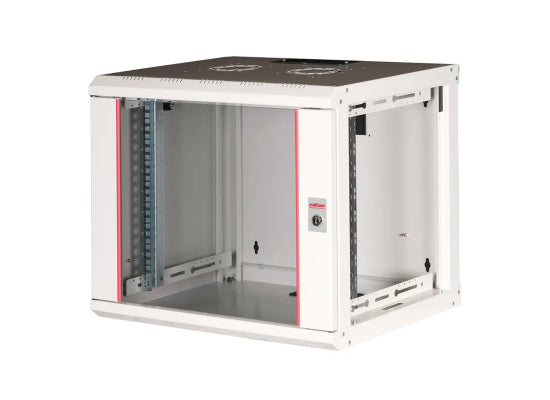 Roline Wandgehäuse Pro, 9HE, grau, 600x600mm, Glastür, 19, , Die Wandgehäuse der ROLINE Pro Serie wurden speziell für eine flexible Netzwerkverkabelung konzipiert. Jeder Schrank verfügt über einen aufschiebbaren Kabeleinlass im Dach mit Moosgummidichtung. Die Rückwand und das Bodenblech sind mit ausgestanzten Kabeleinlässen und Kunststoffabdeckungen ausgestattet. Das Dachchassis bietet einen ausgestanzten Bereich zur Aufnahme eines Lüftermoduls. Im Inneren sind zwei Paar galvanisierte Profilschienen mit Höheneinheiten von 483 mm (19") verbaut, die zusätzlich in der Tiefe verstellbar sind. Die robusten Stahlkonstruktionen der Schränke bestehen aus bis zu 1,5 mm starkem Stahlblech und sind in Grau (RAL 7035) oder Schwarz (RAL 9005) pulverbeschichtet erhältlich. Die Seitenwände und die Fronttür sind modular abschließ- und abnehmbar, was die Zugänglichkeit verbessert. Die Wandmontage erfolgt in zwei einfachen Schritten: Zuerst wird die Rückwand an die Wand geschraubt und dann mit dem Gehäuse verbunden. Optional können Nivellierfüße oder Rollen verwendet werden, um die Schränke freistehend zu nutzen. Features Traglast: 100 kg Fronttür aus gehärtetem Glas, abschließbar 1-Punkt-Verriegelung an der Fronttür Seitenteile sind abschließ- und abnehmbar Kabelzuführung an Rückseite und Boden Dach mit Austanzung für Lüftermodule Lüftungsschlitze für passive Be- und Entlüftung Inkl. Befestigungsmaterial IP Schutzklasse: IP20 Technische Daten Produktgruppe: 19"-/10"-Technik Produkttyp: 19"-Wandgehäuse Farbe: grau Rastermaß: 482,6 mm (19 Zoll) Höheneinheiten: 9 HE Unterstützte Mindest-Racktiefe: 305 mm Unterstützte Maximal-Racktiefe: 370 mm Lieferzustand: komplett montiert Materialgruppe: Stahl Material Fronttür: Glas Wandmontage möglich: ja Justierfüsse: nein Maximale Tragkraft: 100 kg Schutzart (IP Code): IP20 Schalldicht: nein Fronttür: Glastür Rackschienen: ja Seitenwände enthalten: ja Abnehmbare Seitenwände: ja Abnehmbare Vordertür: ja Abnehmbare Hintertür: nein Belüftung: passiv RAL-Farbe: RAL 7035 Lichtgrau Maße (BxHxT): 505x600x600mm Gewicht: 17.6 kg Lieferumfang 19-Zoll Wandgehäuse Pro 9 HE Erdungskabel-Set Installations-Set (Schrauben, Käfigmuttern, Unterlegscheiben) 2x Schlüssel Montageanleitung