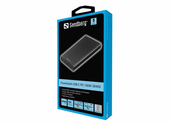 Sandberg 420-63 USB-C PD Powerbank Eine leistungsstarke Powerbank aus Aluminium mit hoher Geschwindigkeit, großartiger Leistung und großer Kapazität. Wenn du nicht in der Nähe einer Steckdose bist, gewährleistet diese Powerbank eine optimale Aufladung für jedes mobile Gerät. Unterstützt die Standards USB-A und USB-C PD 100W. Letzteres ermöglicht es, fast alle USB-C-Geräte mit maximaler Geschwindigkeit aufzuladen, einschließlich Laptops. Technische Daten Lädt USB-C-betriebene Laptops mit voller Geschwindigkeit auf Aufladen von USB- und USB-C-Geräten 2 Eingänge, 3 Ausgänge Riesige Akkukapazität