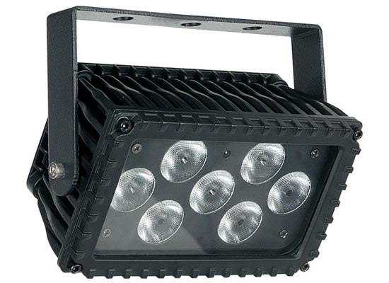 Showtec Cameleon 7RGB LED Outdoorfluter Der Cameleon Flood 7RGB ist ein kompakter aber leistungsstarker RGB-Fluter für zahlreiche Anwendungsbereiche. Da er mit einer IR-Fernbedienung (separate Bestellnummer: 42704) gesteuert werden kann, ist er sehr einfach einzurichten, Dank seines Aluminiumgehäuses ist er annähernd wartungsfrei und verfügt über eine ausgezeichnete Umluftkühlung. Kurz gesagt, es handelt sich um ein langlebiges und leises Produkt. Achtung: Das Einstellen der DMX Startadresse geht nur über die optionale IR-Fernbedienung. (Nicht im Lieferumfang enthalten) Technische Daten Eingangsspannung: 100~240 VAC 50/60Hz Leistungsaufnahme: 21W LEDs: 7x 3W LED Strahlungswinkel: 40 Grad IP-Schutzart: IP65 Betriebsmodus: Musiktaktung, Standalone, DMX-512 DMX-Kanäle: 3 Steuerung: Optionale IR-Fernbedienung, Bestellnummer 42704 Gehäuse: Aluminium, schwarz beschichtet Maße: 150 x 90 x 70 mm Gewicht: 1,4 kg