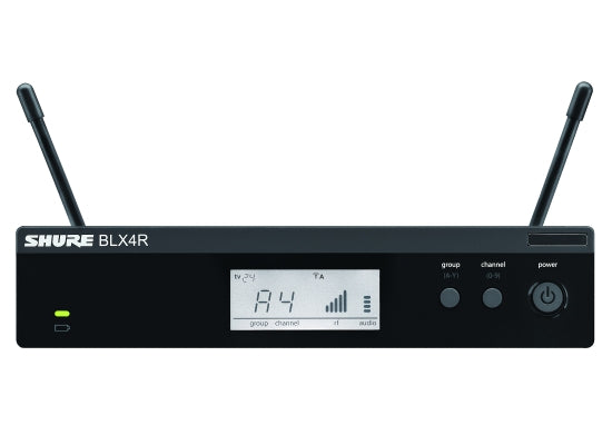 Shure BLX24RE/BETA58 S8 Funksystem Technische Daten BLX4RE S8 Empfänger S8-Band 823-832MHz Mikroprozessor-gesteuertes Antennendiversity QuickScan findet per Knopfdruck die beste freie Frequenz Einstellbarer Ausgangspegel Abnehmbare Antennen LC Display mit detaillierter HF- und Audio-Anzeige Robustes Metallgehäuse Klinken- und XLR-Ausgänge Zweifarbige Audiostatus LED Ausgangsimpendanz: XLR Steckverbindung: 200 Ω, 6.35 mm (1/4") Steckverbindung: 50 Ω Audio Ausgangspegel, Ref. ±33 kHz Abweichungen bei 1 kHz Ton: XLR Steckverbindung: –20.5 dBV (into 100 kΩ load), 6.35 mm (1/4") Steckverbindung: –13 dBV (into 100 kΩ load) HF Empfindlichkeit: -105 dBm for 12 dB SINAD Spiegelfrequenzunterdrückung: >50 dB Gehäuse: Metall Maße: 50 mm X 198 mm X 163 mm H x W x T Gewicht, ohne Antennen: 998 g Beta58 S8 Handsender S8-Band 823-832MHz dynamische Beta58 Mikrofonkapsel Superniere Lieferumfang 1x BLX4RE Empfänger 1x Beta 58 Handsender 1x Rackmountkit 1x Mikrofonklemme 1x Gewindeadapter 2x 1/4 Lambda Antenne 2x BNC Adapter 1x Reißverschlusstasche 2x BNC-Koaxialkabel, ca. 55 cm 1x Netzteil