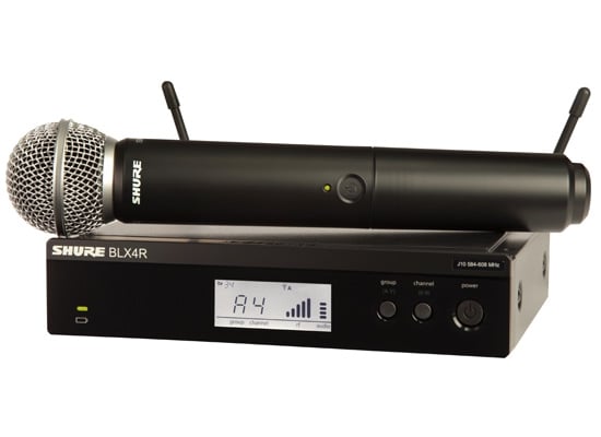 Shure BLX24RE/SM58 S8 Funksystem Technische Daten BLX4RE S8 Empfänger S8-Band 823-832MHz Mikroprozessor-gesteuertes Antennendiversity QuickScan findet per Knopfdruck die beste freie Frequenz Einstellbarer Ausgangspegel Abnehmbare Antennen LC Display mit detaillierter HF- und Audio-Anzeige Robustes Metallgehäuse Klinken- und XLR-Ausgänge Zweifarbige Audiostatus LED Ausgangsimpendanz: XLR Steckverbindung: 200 Ω, 6.35 mm (1/4") Steckverbindung: 50 Ω Audio Ausgangspegel, Ref. ±33 kHz Abweichungen bei 1 kHz Ton: XLR Steckverbindung: –20.5 dBV (into 100 kΩ load), 6.35 mm (1/4") Steckverbindung: –13 dBV (into 100 kΩ load) HF Empfindlichkeit: -105 dBm for 12 dB SINAD Spiegelfrequenzunterdrückung: >50 dB Gehäuse: Metall Maße: 50 mm X 198 mm X 163 mm H x W x T Gewicht, ohne Antennen: 998 g SM58 S8 Handsender S8-Band 823-832MHz Optimaler Übertragungsbereich für Gesang mit präsenten Mitten und Bassabsenkung Kaum Rückkopplungen und reduzierte Hintergrundgeräusche dank Nierencharakteristik Integrierter, luftgefederter Erschütterungsabsorber minimiert Griffgeräusche Integrierter, effektiver Wind- und Pop-Filter Legendäre Shure Qualität, Robustheit und Zuverlässigkeit Kapseltyp: Dynamisch Richtcharakteristik: Niere Übertragungsbereich: 50 Hz - 15 kHz Empfindlichkeit: -54,5 dBV/Pa / 1,88 mV/Pa Gewicht: 298 g Lieferumfang 1x BLX4RE Empfänger 1x SM58 Handsender 1x Rackmountkit 1x Mikrofonklemme 1x Gewindeadapter 2x 1/4 Lambda Antenne 2x BNC Adapter 1x Reißverschlusstasche 2x BNC-Koaxialkabel, ca. 55 cm 1x Netzteil