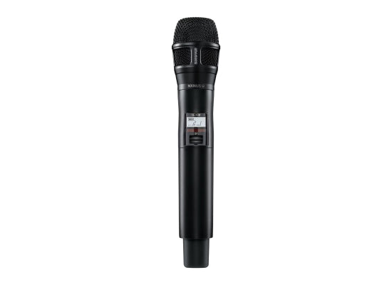Shure QLXD2/N8S H51 Digital-Handsender Mit seiner transparenten digitalen 24-Bit-Audioqualität und der unglaublich effizienten Nutzung des HF-Spektrums ist der QLXD2-Handsender ideal für drahtlosen Gesang in Präsentationsräumen, Konzertsälen und religiösen Einrichtungen. Der QLXD2 ist einfach zu bedienen, synchronisiert sich auf Knopfdruck schnell mit einem drahtlosen Empfänger über IR und behält ein klares, störungsfreies Signal über seine gesamte Reichweite von 100 m bei. Die Vollmetallkonstruktion sorgt für Langlebigkeit, und eine große Auswahl an kompatiblen Mikrofonen bietet die legendäre Shure-Klangcharakteristik. Features Linearer Frequenzgang in einem Frequenzbereich von 20 Hz bis 20 kHz (tatsächlicher Frequenzgang ist vom Mikrofon abhängig) Auswechselbare Shure-Mikrofonkapseln, einschließlich des legendären SM58® 256-Bit-AES-Verschlüsselung für abhörsichere Übertragung Über 120 dB Dynamikbereich – keine Anpassung der Senderverstärkung erforderlich 1, 10 mW wählbare HF-Ausgangsleistung Bis zu 9 Stunden Dauerbetrieb mit 2 x AA-Alkalibatterien Der optionale Shure SB900B Lithium-Ionen-Akku bietet bis zu 10 Stunden Dauerbetrieb und zeigt die verbleibende Betriebszeit in Stunden und Minuten an Externe Ladekontakte für das Laden in der Ladestation LCD mit Hintergrundbeleuchtung und intuitivem Menü und Bedienelemente Wählbarer Anzeigemodus für Gruppe/Kanal, Frequenz oder Batterielaufzeit Aufnahmereichweite von 100 Meter Robustes Metallgehäuse Frequency- und Power Lock Lieferumfang 1x QLXD2 mit N8SB Kapsel 1x WA371 Mikrofonklammer 1x Mikrofontasche 2x AA- Batterie