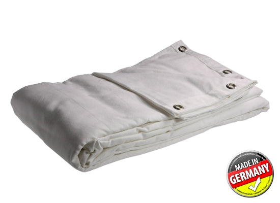 Sweetlight BV/KO-8/5-W-300 Molton, weiß MADE IN GERMANY Molton wird eingesetzt als Bühnenhintergrund im Live-Bereich oder als Dekostoff bei Präsentationen. Unsere Sweetlight Molton Vorhänge werden aus schwer entflammbaren Material hergestellt, feuerhemmend imprägniert, auf allen Seiten gesäumt und an der entsprechenden Seite mit Gurtband und Ringösen versehen. Wie Sie unserer Liste entnehmen können sind die genannten Größen fertig konfektioniert erhältlich. Sondergrößen können auf Wunsch bestellt werden. Technische Daten Material: Molton Farbe: weiß allseitig gesäumt mit Ösen alle 25cm (1x kurze + 1x lange Seite) Maße: 8x5 m Gewicht: 300 g/m² Materialzusammensetzung: 100% reine Baumwolle