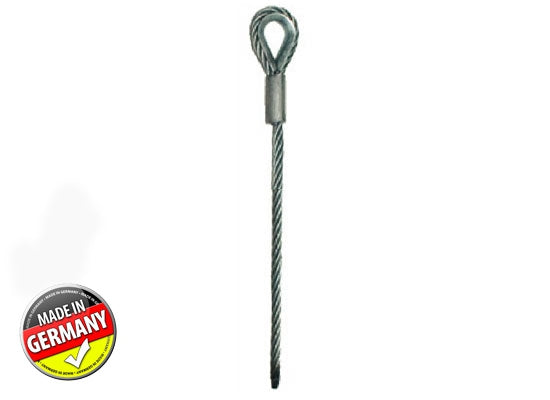 SweetPRO AN 06/2000-S 1K Anschlagseil, Ø6mm, 2m, SILBER MADE IN GERMANY Anschlagseil mit einer Kausche und verzinntem Seilende Technische Daten Länge 2m Seil Ø 6mm Kauschen Ø 16mm Max. Traglast nach DGUV 215-313: 190kg Max. Traglast WLL: 380kg