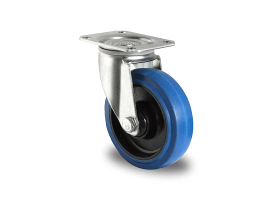 SweetPro LR-100 BL-UG Lenkrolle (Blue Wheel) Technische Daten Gehäuse Gehäuse-Lenkrolle mit Totalfeststeller Baureihe: Premium Befestigungsart: Befestigungsplatte Lochmaße / Nabenbreite: 80 x 60 mm / 42 mm Stärke der Befestigung: Gabel 3,00 mm / 2,50 mm Oberflächenbehandlung: galvanisch blau verzinkt Rolle Durchmesser: 100 mm Radkörper: Polyamid schwarz Radlauffläche: elastisch 70-75° Shore A blau Lagerung: DIN EN 12532 Fadenschutz: kein seperater Fadenschutz Nabenbreite: 40mm Achsdurchmesser: M 8 Temperaturbereich: -20°C - +60°C dyn. Tragfähigkeit: 200 kg Prüfnorm: DIN EN 12532 Gewicht: 0,858kg