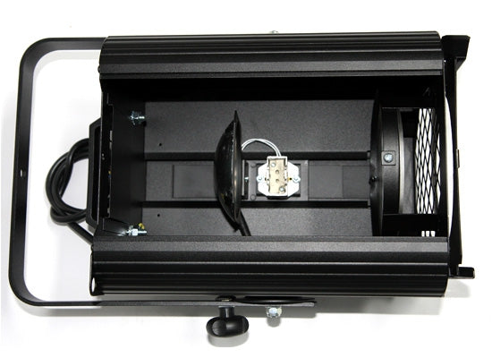 SweetPRO LS-1000PC Linsenscheinwerfer Features Geeignet ab 2.5m bis 18m Entfernung Screw-Fokus-Einstellung, vordere und hintere Kontrolle Aufklappbare Basis, für einfachen Zugriff auf die Lampe Entspricht den CE-Normen Schwarz (Standard) Epoxydpulverlack Max. Oberflächentemperatur 150° Stahlbügel mit 12mm Mittelloch Technische Daten Netzspannung: 230V 50/60Hz Maximale Belastbarkeit 1000W (Standardausführung) Passend für GX9.5 650W / 1000W Halogenlampen Sockel GX9.5 GX9.5: Lichtschwerpunkt/Fassung Abstand 55mm Spiegel-Durchmesser 100mm PC-Linsen Durchmesser 150mm PC Anti-alo: Zoom von 11 bis 57 ° 1m flexibles Kabel mit Zugentlastung Maße: 288x342x360mm Gewicht: 6.0 kg