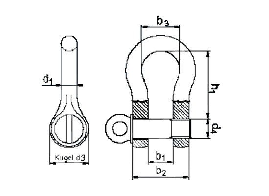 SweetPRO SH-SB/B Schäkel geschweift, schwarz, WLL 3250kg Features hochfest vergütet geschweifte Form Schraubbolzen Technische Daten Max. Traglast WLL: 3250kg Bolzenaufnahme (d4): 20mm Materialstärke Schäkel (d1): 16mm Aufnahmebreite (b1): 27mm Innendurchmesser (b3): 43mm b2: 59mm d3: 42mm h1: 60mm Gewicht: 0,65kg