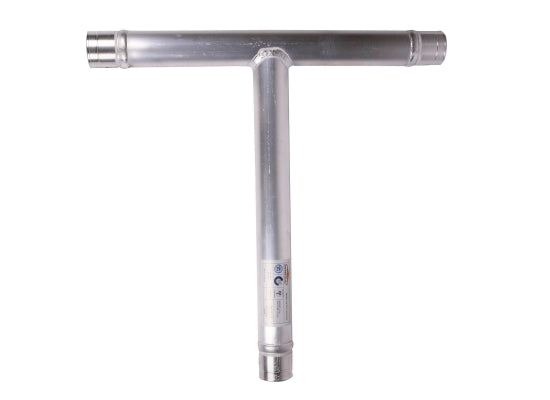 Sweettruss KV1/050-T36H T-Stück Produktinformationen T-Stück, 3-Weg, 90°, horizontal, 0.5m Eurotruss und Global Truss kompatibel Sweettruss KV1/050-T36H 1-Punkt T-Stück, gefertigt aus 50 x 2 mm Tragrohr. Das 1-Punkt Aluminium-T-Stück findet aufgrund seiner leichten und optisch ansprechenden Bauweise Verwendung auf kleinen Bühnen, sowie im Werbe- und Architekturbereich. Das T-Stück wird über konische Verbindungselemente und Kegelstifte mit den Traversen verbunden. Technische Daten 1-Punkt-Fachwerk Anschlüsse über Koniverbinder mit Kegelsteckern Schenkellänge: 500mm Packmaß: 500x500x50mm Gewicht: 1,7kg Lieferung inkl. einem Verbindersatz!
