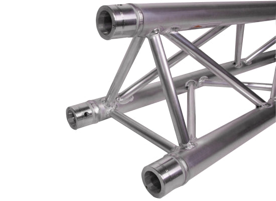 Sweettruss KV3/290-150 Traverse 1.5m Eurotruss und Global Truss kompatibel Sweettruss KV3/290 3-Punkt Traverse, gefertigt aus 50 x 2 mm Tragrohr und 20 x 2 mm Füllstäben. Die 3-Punkt Aluminiumtraverse findet aufgrund ihrer leichten und optisch ansprechenden Bauweise Verwendung auf kleinen Bühnen, sowie im Werbe- und Architekturbereich. Die Traversen werden über konische Verbindungselemente mit Kegelstiften untereinander verbunden. Sonderkonstruktionen oder gebogene Traversen sind in fast allen Abmessungen und Ausführungen lieferbar. Technische Daten Lieferung inkl. einem Verbindersatz! 3-Punkt-Fachwerk Systemmaß = 240 mm Außenmaß = 290 mm mit Diagonalstäben in allen Fachwerkseiten Anschlüsse über Koniverbinder mit Kegelsteckern Legierung AlMgSi 1 F28 (Al 6082t6) Gewicht: 5,8kg