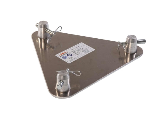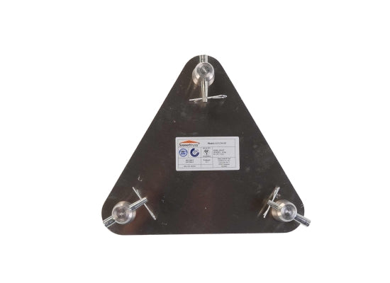 Sweettruss KV3/290-BP Bodenplatte Features inklusive 3xHalbkonusverbinder Eurotruss und Global Truss kompatibel Technische Daten Material: AlMgSi 1 F28 (Al 5754-H111) Maße Grundplatte (BxTxH): 305x305x5mm Gewicht: 1,3kg
