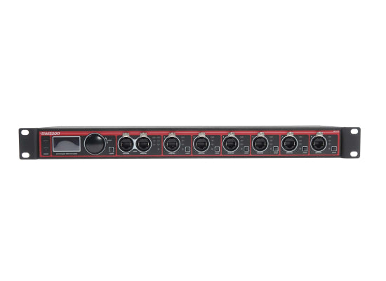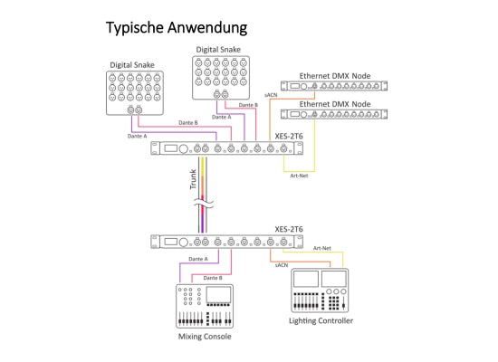 Swisson XES-2T6 Gigabit-Ethernet-Switch Der XES-2T6 ist ein Gigabit-Ethernet-Switch mit sechs plus zwei Ports, wobei zwei dieser Ports gebündelt sind, sodass eine Verbindung mit Redundanz und erhöhtem Durchsatz aufgebaut werden kann. Die verbleibenden sechs Ports können individuell Gruppen (IEEE 802.1Q VLANs) zugewiesen werden und an jeweils völlig unabhängigen Netzwerken teilnehmen. Dank dem graphischen OLED-Display und dem Encoder-Rad, sowie einem Taster für jeden der sechs konfigurierbaren Ports, ist der Switch auf einfache Weise rasch eingerichtet. Die Gruppierung und die schnelle, redundante, gebündelte Leitung machen den Switch ideal, um etwa die Bühne mit dem FOH zu verbinden. Als Layer-2-Switch ist der XES-2T6 im Allgemeinen applikations-agnostisch und funktioniert daher mit jedem Protokoll, das auf TCP/IP aufbaut, sowie mit vielen Ethernet-basierten Protokollen. Dennoch wurden spezielle Vorkehrungen getroffen, um sicherzustellen, dass der XES-2T6 einwandfrei mit Art-Net, sACN und Dante funktioniert. Die Art-Net-Spezifikation geht beispielsweise davon aus, dass ein Kontroller nur alle paar Sekunden, oder wenn Updates vorhanden sind, Daten verschickt. Ein typischer Switch könnte in den Schlafmodus übergehen, wenn keine Daten beobachtet werden, während der XES-2T6 jederzeit bereit bleibt, Daten unverzüglich weiterzuleiten. Mit der zunehmenden Verbreitung von TCP/IP und Ethernet-basierten Protokollen, wird die Verfügbarkeit der Netzwerkausrüstung laufend kritischer. Daher ist es entscheidend, dass das Netzwerk für jede Show, bzw. Einrichtung professionell geplant, konfiguriert und installiert wird. Um die Wahrscheinlichkeit eines Netzwerkausfalls weiter zu verringern, wurde der XES-2T6 mit zwei separaten Schaltnetzteilen ausgestattet. Features Optimiert für Art-Net, sACN und Dante Zwei gebündelte Trunk-Ports Gruppen (IEEE 802.1Q VLANs) DiffServ (Differentiated Services) mit vier Queues für optimale Service-Qualität (QoS) mit dem Dante-Protokoll Keine Broadcast-Begrenzung Redundantes zweites Universal-Netzteil Neutrik powerCON-Eingänge und -Ausgänge für Primär- und Backup-Netzteil Neutrik etherCON-Anschlüsse für Netzwerkverbindung Zur Montage im 19"-Rack, 1 Höheneinheit Technische Daten Typ: Ethernet Switch Anschlüsse: 6 + 2 Ethernet Ports 1000BASE-T (IEEE 802.3ab) und 100BASETX / 10BASE-T, auto negotiating, auto MDI-X Spannung: 100 - 240 V AC Farbe: rot/schwarz Material: Metall Leistungsaufnahme: ca. 10 Watt Umgebungstemperatur: -30 - 55° Maße (BxTxH): 482x136x44,5mm Gewicht: 1,7kg